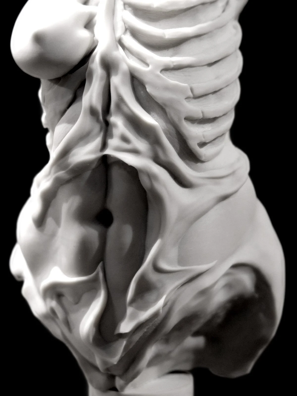 Beginning as an intense anatomical study and refined through CAD and 3D printing, this heavyweight pendant is cast in recycled sterling silver. Every line and hollow is intentional, creating shadow, depth and sculptural presence, reminiscent of a rediscovered ancient relic once lost in time.